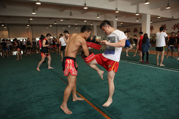 当天上午,泰国泰拳专业队与我院武术系师生进行了互动交流,他们向同学们传授了原汁原味的泰拳基本招式和拳法。