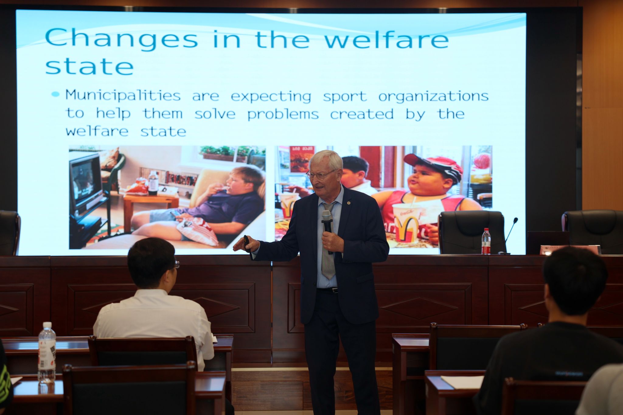 5月15日,丹麦葛莱体育运动教育学院名誉校长费恩·伯根教授受邀来访并为师生作报告。