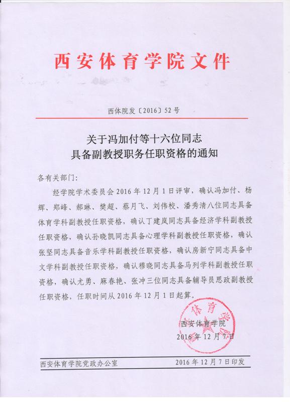 关于冯加付等十六位同志具备副教授职务任职资格的通知