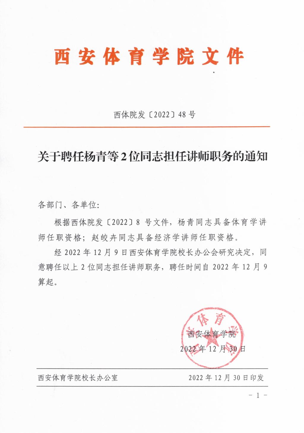 关于聘任杜兴雨等2位同志担任中级教练职...