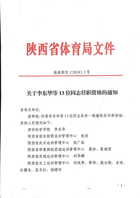 关于聘任蒋秋艳同志担任国家级教练职务...