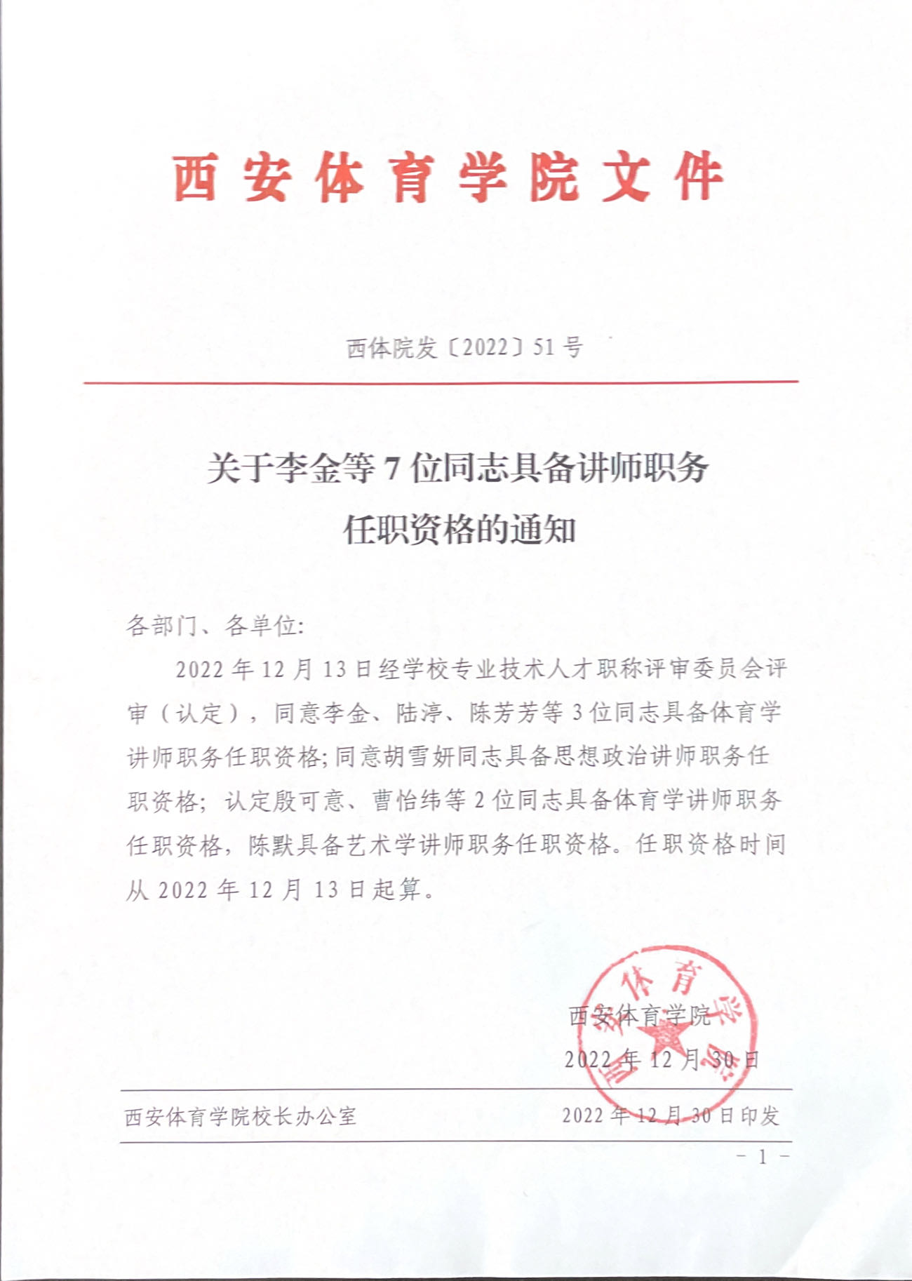 关于李金等7位同志具备讲师职务任职资格的通知