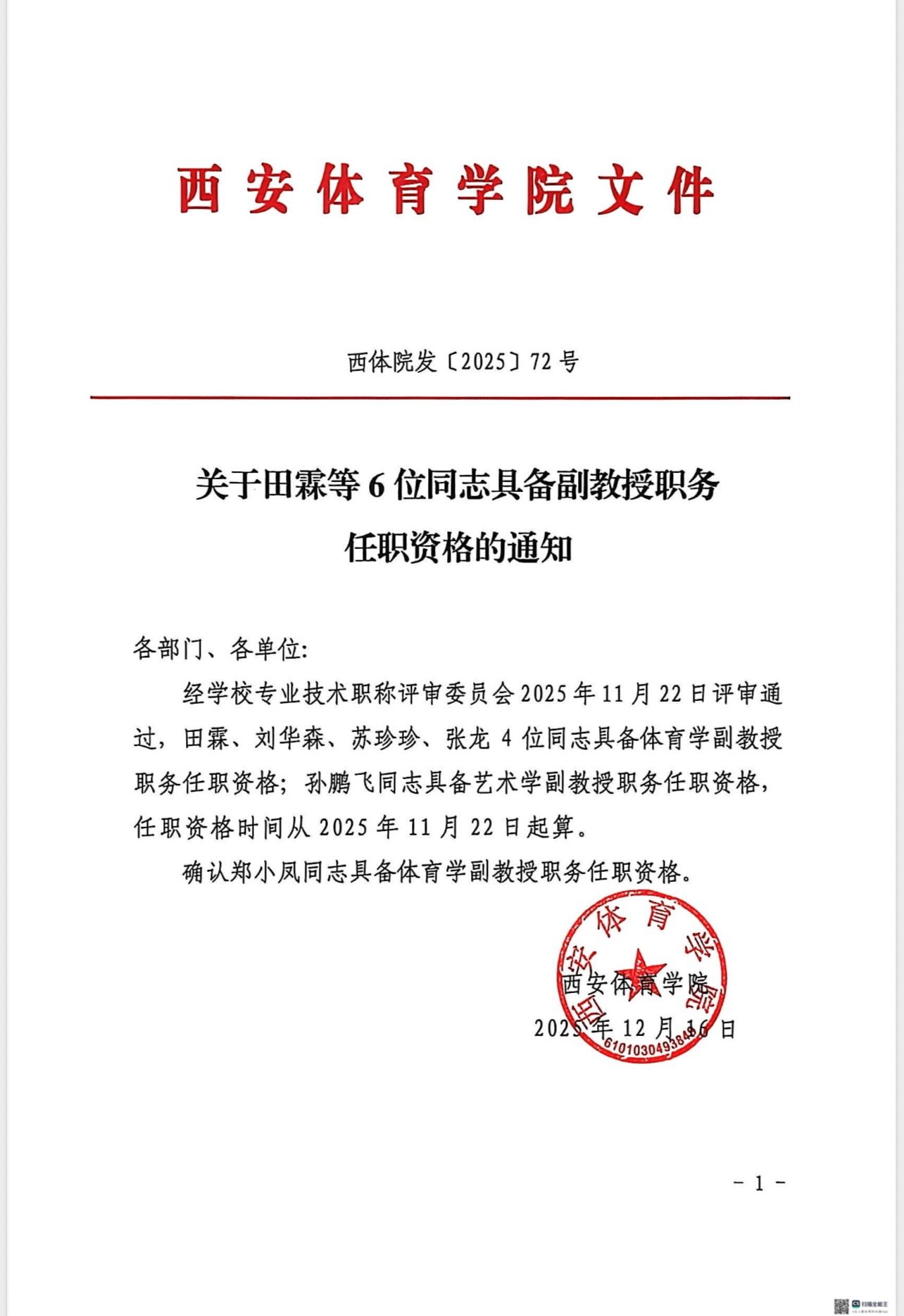 关于田霖等6位同志具备副教授职务任职资格的通知