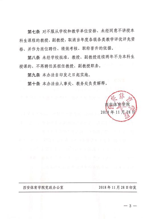 西安体育学院关于教授、副教授给本科生上课的规定