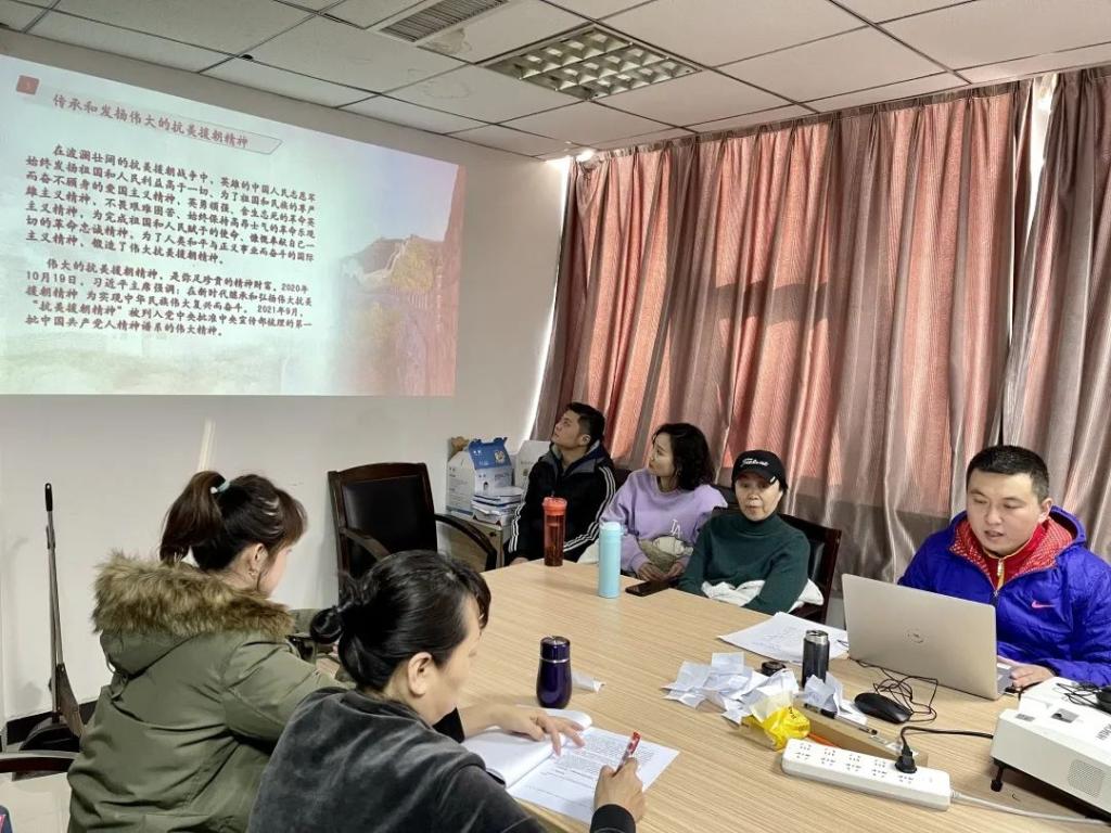 操舞教研室于12月1日开展党史专题学习会议,党员教师郭伟同志带领全体教师学习了中国精神谱系中“抗美援朝精神”的相关内容。