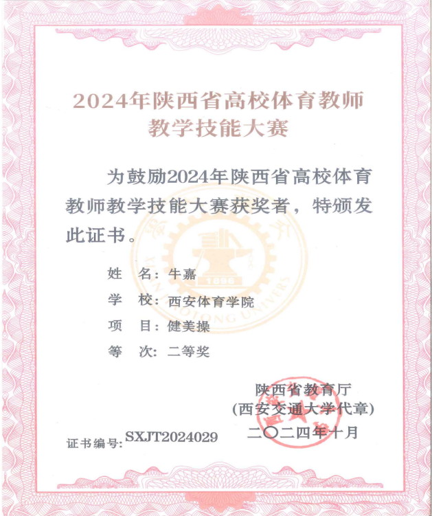 牛嘉老师荣获二等奖