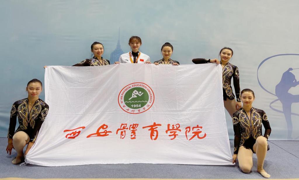 西安体育学院艺术体操队在领队吕学宏老师、闫晓老师、陆渟老师的带领下,5名参赛队员默契合作、精准配合,全部获得国家一级运动员的光荣称号。本次参赛队员通过各学院严格选拔,她们秉承西体严谨、创新、团结、拼搏的校训,在本次大赛中凭借完美的配合、整齐划一的动作,出色的完成了每一个动作,赢得裁判、观众们的一致好评,体现出我们西体人的精神风貌。