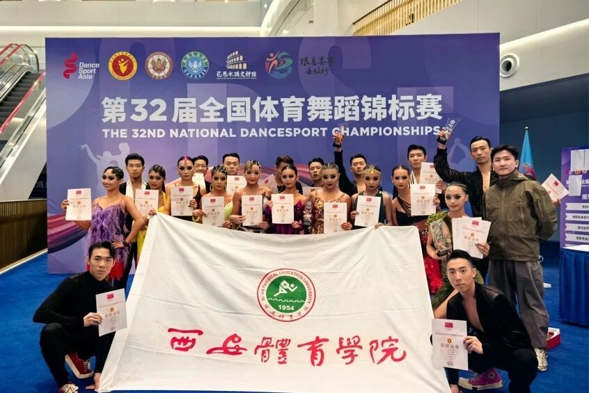 在这场高手云集、群雄逐鹿的第32届全国体育舞蹈锦标赛中,我校体育艺术与传媒学院体育舞蹈院队的学子们不负众望,在教练员方鑫的悉心指导与带领下,一路过关斩将、奋勇拼搏,最终斩获1项冠军、3项亚军、5项季军、4项殿军的优异战绩。赛场上,他们用灵动的舞姿、饱满的热情诠释着体育舞蹈的魅力,每一个旋转、每一次跳跃都展现出西体学子精益求精的专业态度与昂扬向上的竞技风采,为学校赢得了荣誉,也成为赛场上一道亮眼的风景线!