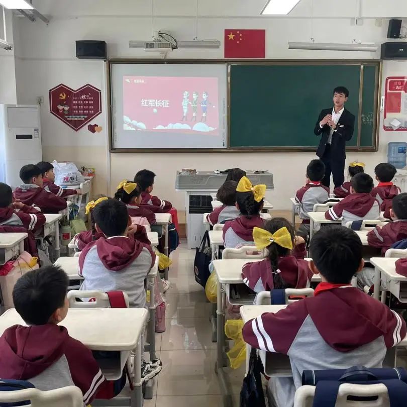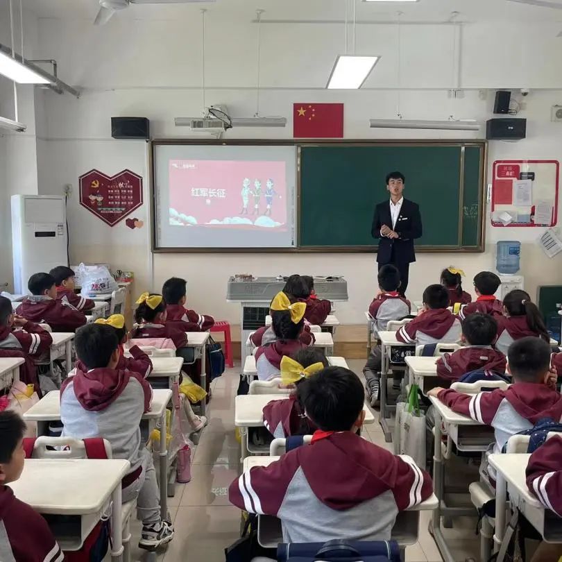 宣讲员们走进课堂,为同学们讲述红色历史故事,通过带领孩子们观看图片和视频等方式,让他们再一次领会到了共产党人勇于担当、甘于奉献的精神。