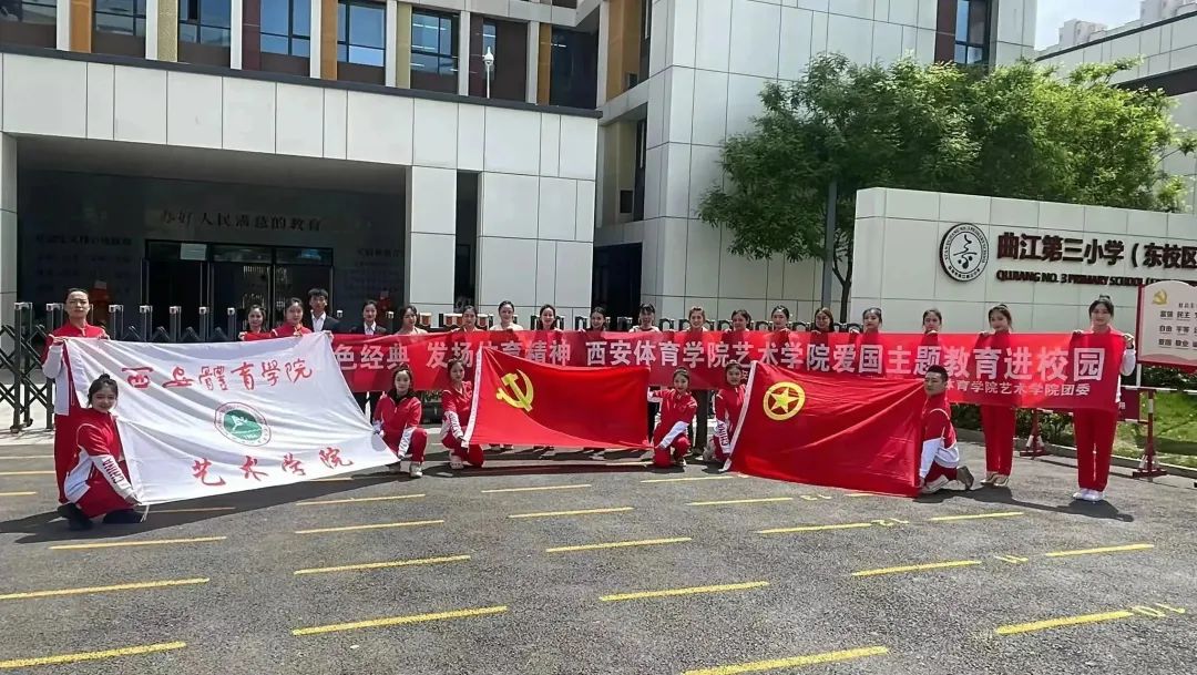 2023年4月22日西安体育学院艺术学院党史学习教育进校园宣讲活动走进曲江三小。艺术学院党委书记丁雪艳、西安体育学院团委委员刘薇、艺术学院团委书记黄宏叶、艺术学院团委委员赵静雯、时欢与艺术学院大学生艺术团20余名学生参加本次活动。