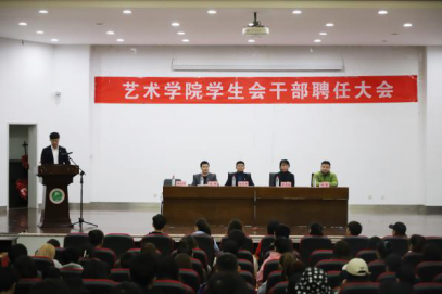 接着,由我院学工办公室主任兼团委书记黄宏叶宣读艺术学院学生会干部任命决定。我院院长杨占军颁发主席团聘书,副院长刘强颁发部长、副部长聘书。