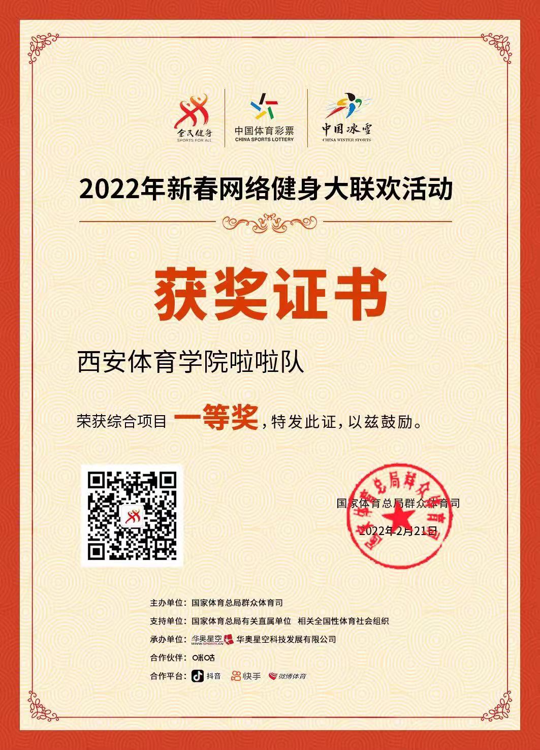 我院啦啦队荣获2022年“新春网络健身大联欢”综合项目一等奖