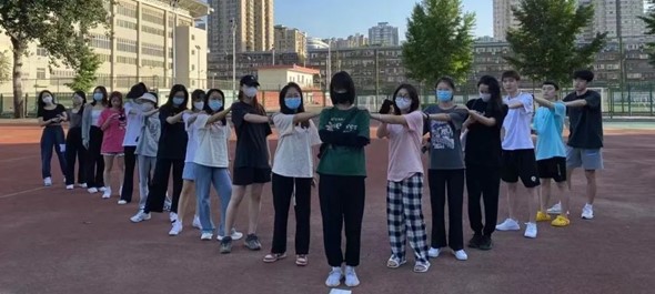 早晨操场上: