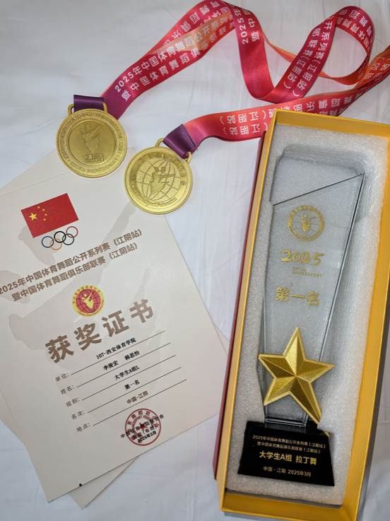 我校艺术学院体育舞蹈21级本科生李俊宏韩思怡在领队杨占军,教练员方鑫的带领下,经过比赛的激烈角逐中,获得大学生A组冠军优异成绩。