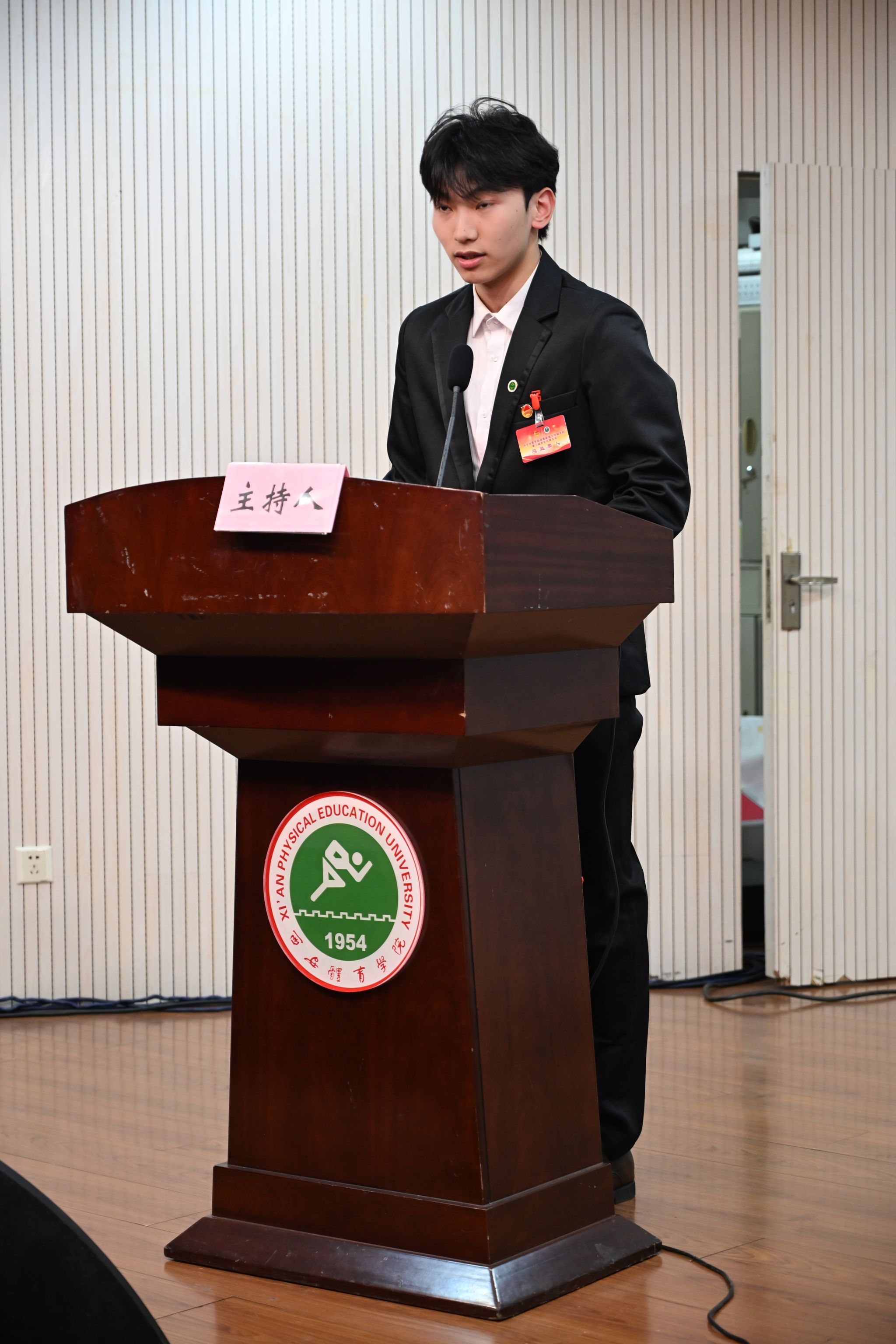 第二届学生会主席李尔恒作《西安体育学院体育新闻与传媒学院第二届学生委员会工作报告》