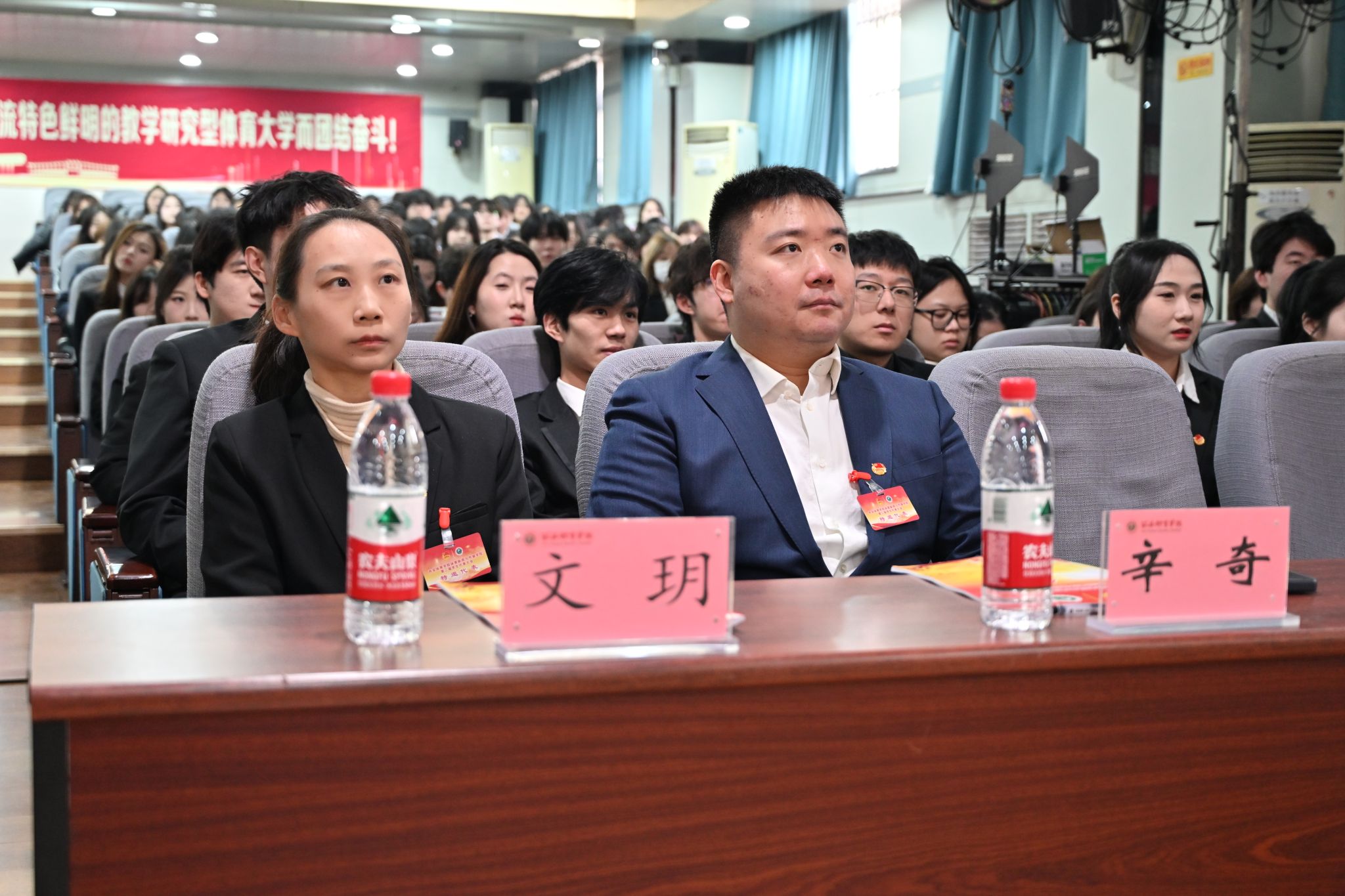 潮平岸阔催人进,凤正扬帆正当时。为高举中国特色社会主义伟大旗帜,深入学习贯彻党的二十大和党的二十届三中全会精神,在建校 70 周年的新起点和全面落实 “十四五”规划、聚力攻坚“双一流”建设目标的新阶段,西安体育学院体育新闻与传媒学院第三届学生代表大会于12月18日在含光校区教学楼一楼报告厅顺利召开。
