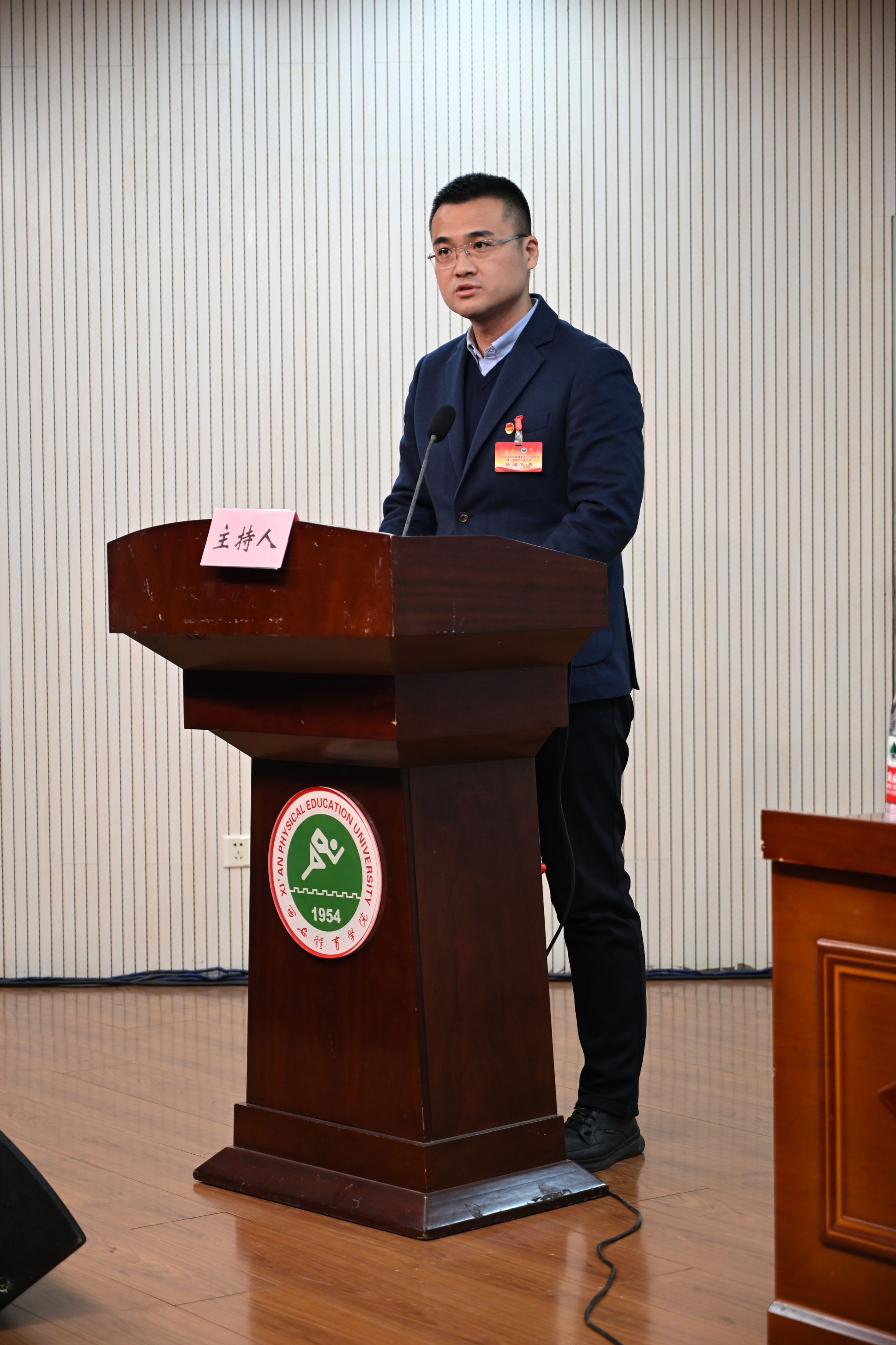 第三届学生会执行主席李艺凡作《西安体育学院体育新闻与传媒学院第三届学生代表大会筹备工作报告》