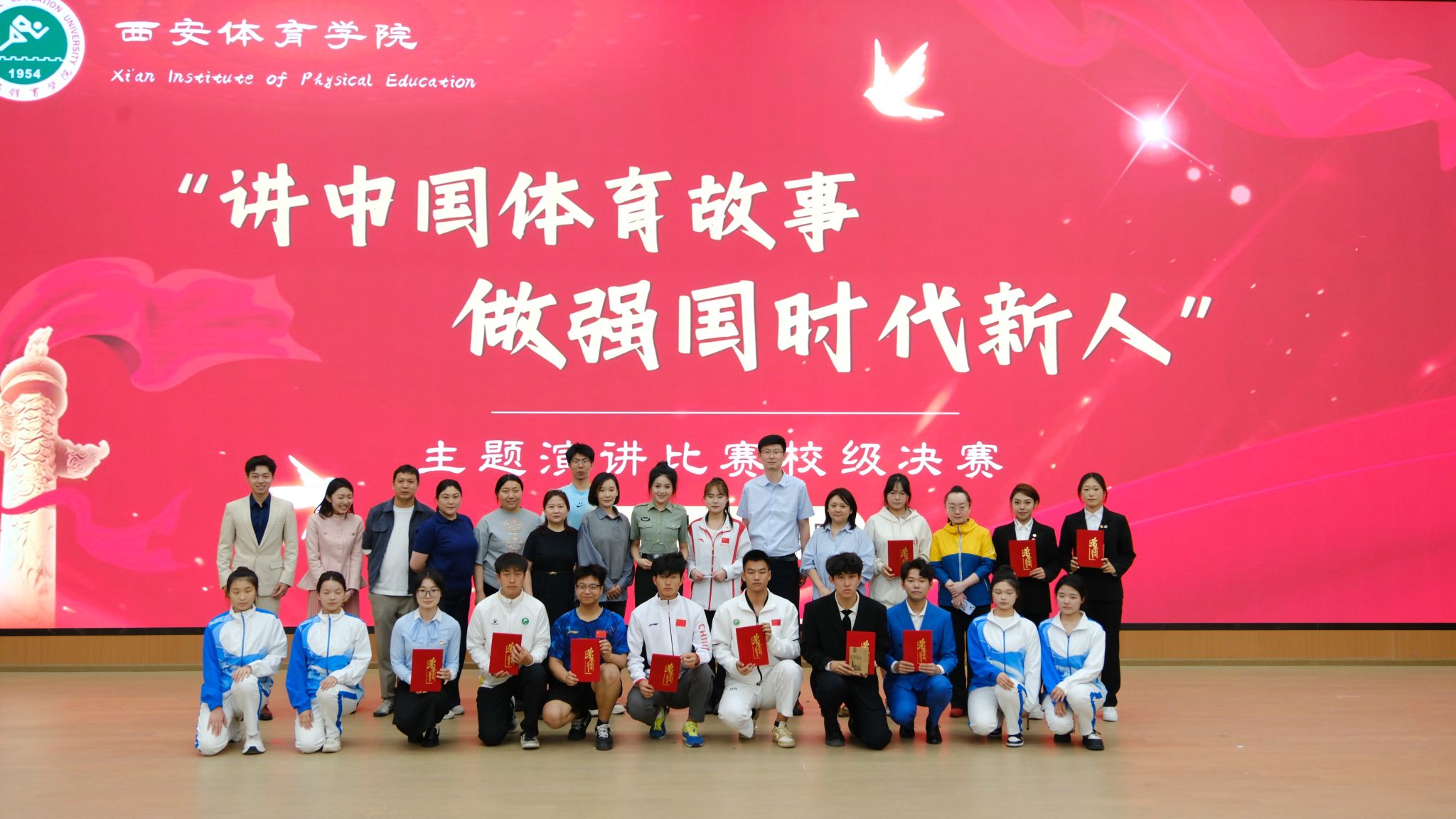 4月25日,由西安体育学院学生工作处、校团委主办,体育新闻与传媒学院承办、各二级学院团委、学生会协办的“讲中国体育故事,做强国时代新人”主题演讲比赛在西安体育学院鄠邑校区圆满结束。本次比赛是面向所有热爱体育文化、弘扬中国精神的全体在校本科生所进行的比赛。旨在弘扬体育精神,增强广大学生的爱国情怀和责任感,同时提升学生的演讲能力和综合素质。体育新闻与传媒学院李亦凡同学荣获本次比赛的一等奖、刘泊延同学荣获本次比赛的二等奖、闫瑾同学荣获本次比赛的三等奖。