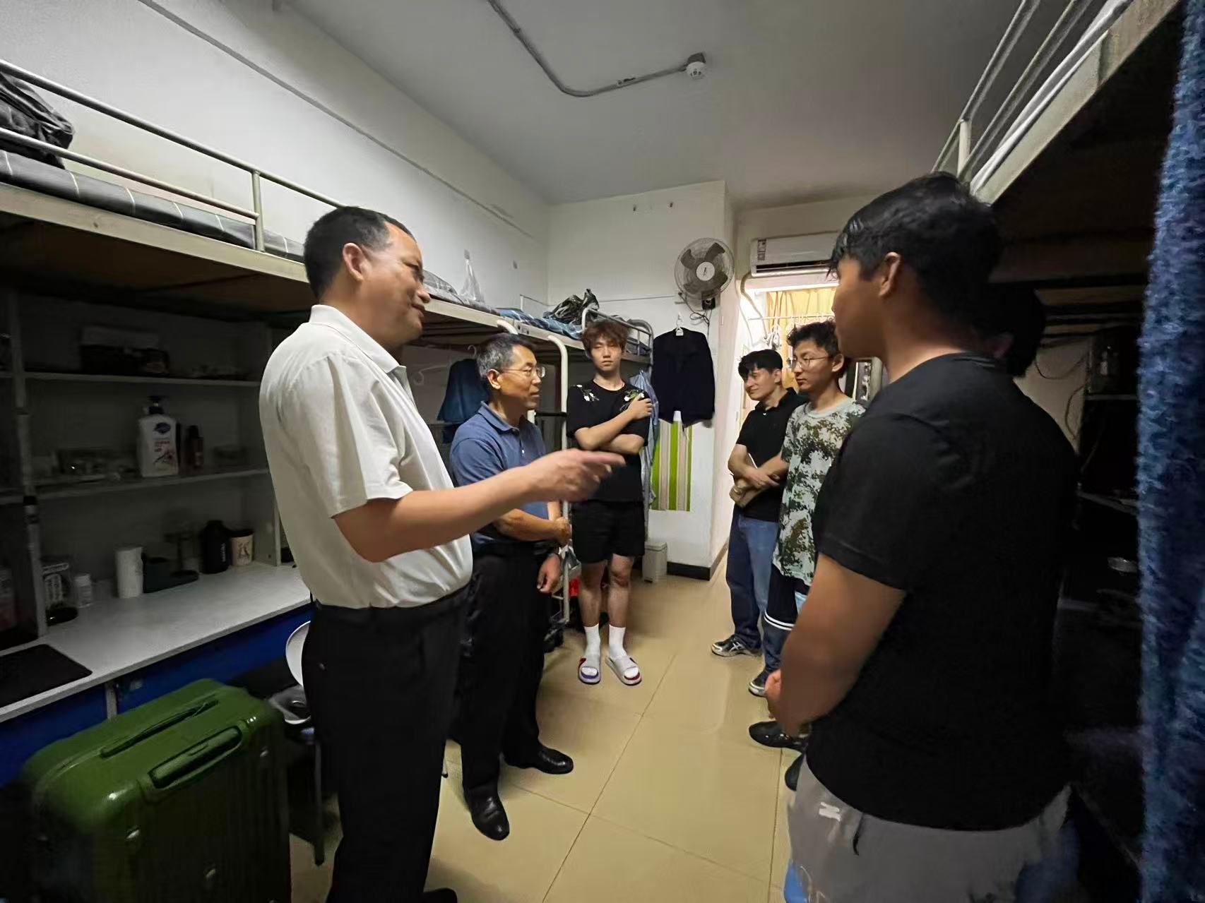 在走访过程中,杨芳乾详细询问了新生的生源地,包括洗衣、作息、饮食、体育特长训练等日常生活学习情况。他鼓励新生积极参与校园文化活动,尽快适应大学生活,规划好人生发展目标,珍惜大学时光,学好本领,早日成为经济社会发展需要的优秀人才。他特别强调指出,学校正处在改革发展的关键期,办学条件、教育教学服务与保障都在改善提升中,师生如遇任何困难,应及时反映。辅导员要深入宿舍,对学生严管厚爱,精准掌握学生的思想动态,及时化解学生的困难矛盾,为新生创造良好的学习生活环境。