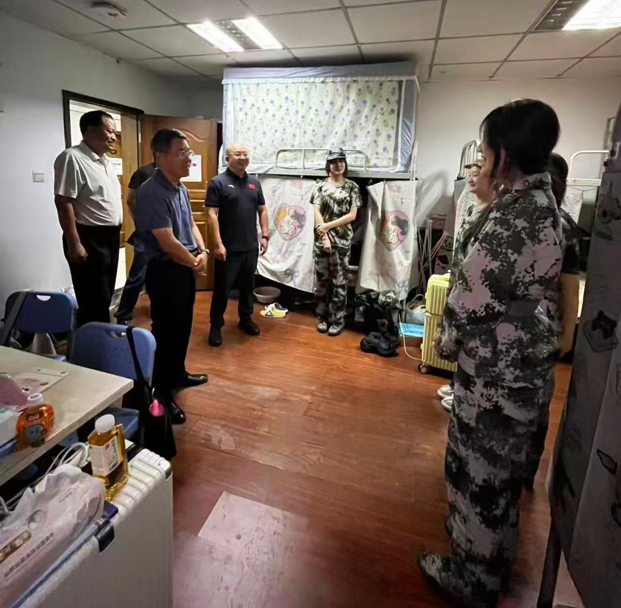 9月16日,校党委副书记、纪委书记、监察专员杨芳乾深入学院开展走访调研工作。学院党政领导班子、科室负责人、辅导员陪同调研。杨书记深入了解含光校区2025级新生军训生活适应情况、学院教职工工作状况、教学科研训练目标任务推进情况、涉及师生切身利益保障与服务情况等。重点考察了新生宿舍、辅导员和教职工办公区域,并与师生进行了亲切交流。