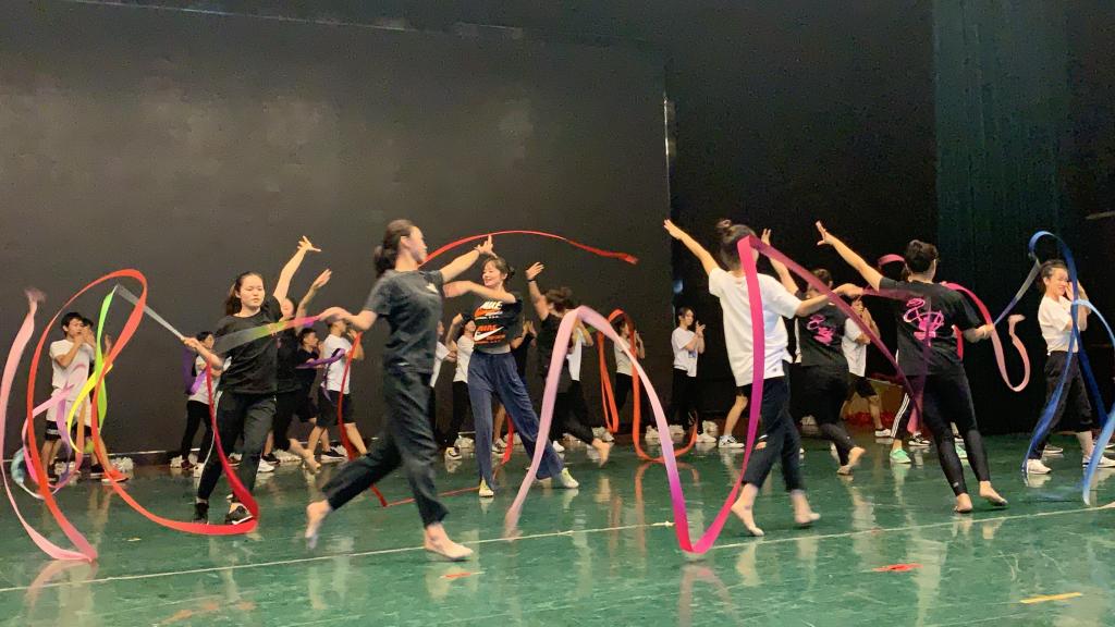 9月6日全体参演师生当天便投入到紧张的排练当中。