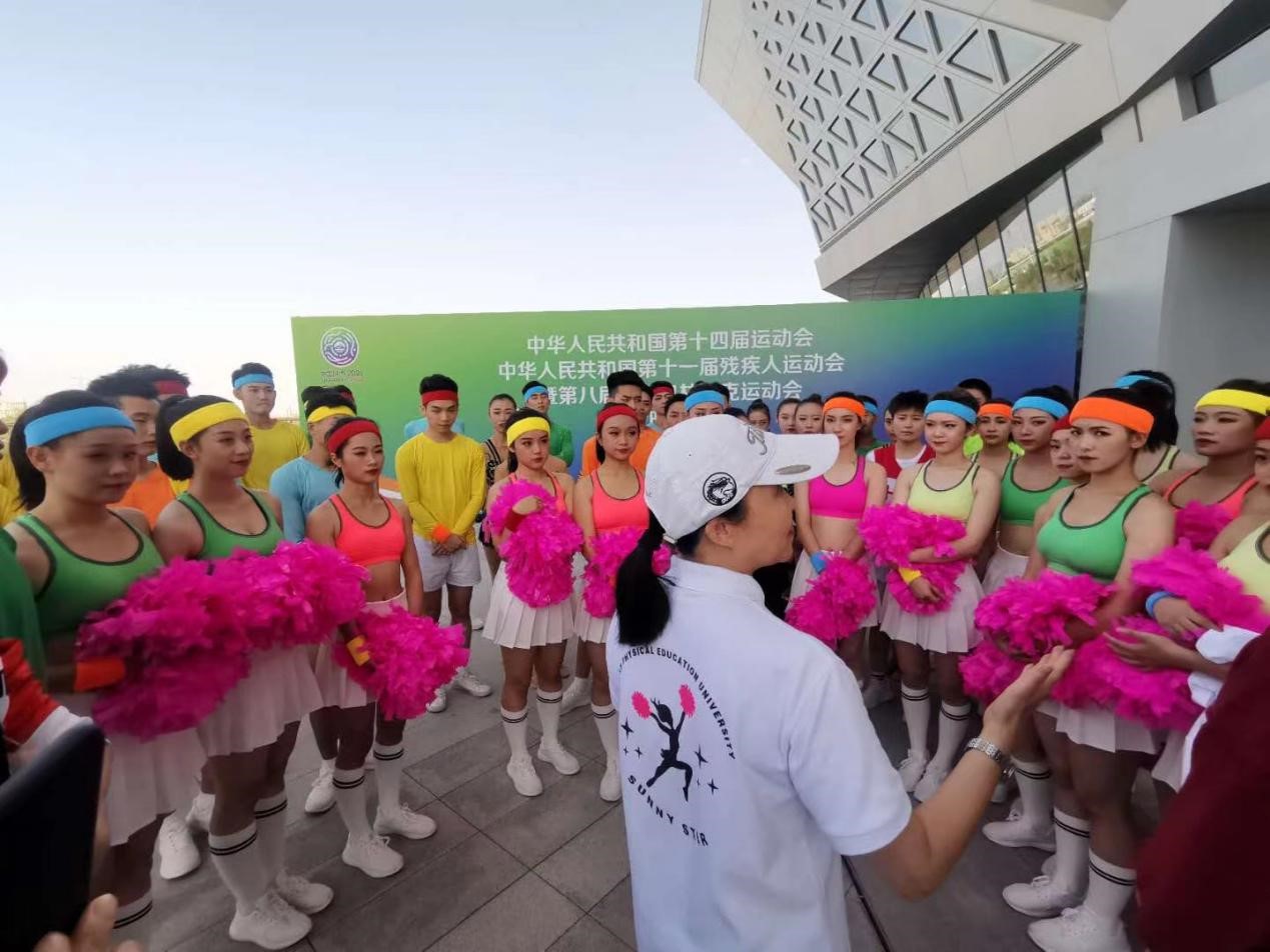 2020年9月15日晚8时,璀璨的灯光在西安奥体中心亮起全国人民共同关注“第十四届全运会和残特奥会倒计时一周年启动活动”。艺术学院操舞教研室闫晓副主任、许波教授、俞丹和陆渟老师以及舞蹈教研室魏明涛主任、娄山老师带领健美操、啦啦操专项学生及艺术体操队共同为新全运助力。西安体育学院艺术学院已经以饱满的热情,向十四运展开双臂,让我们一同期待十四运的成功举办。