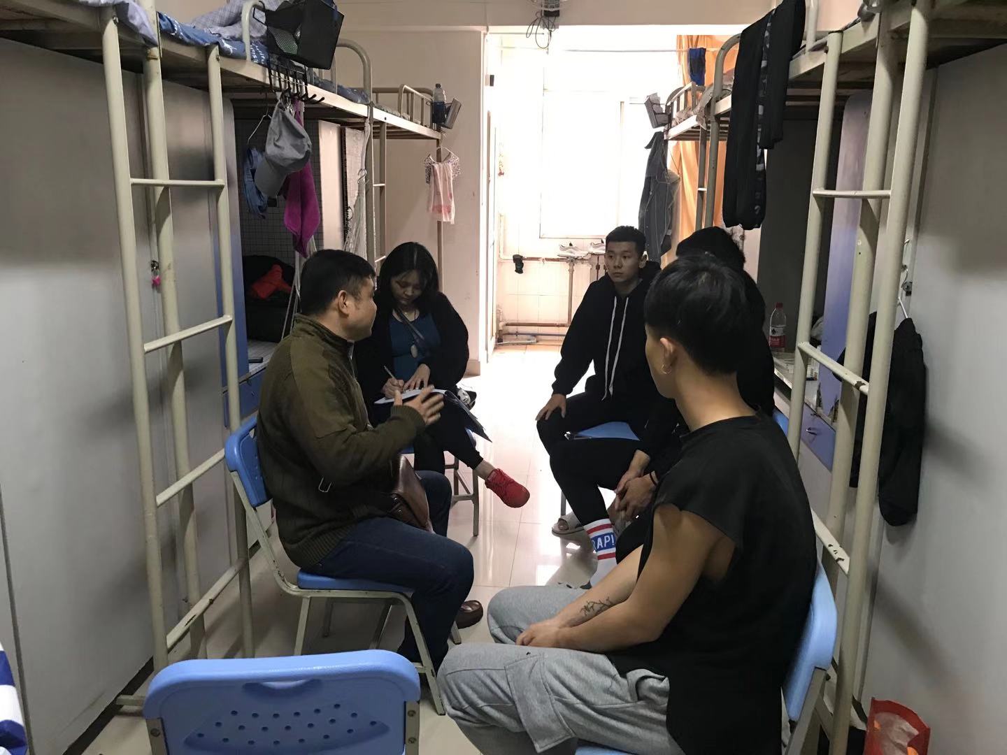 体育艺术学院杨院长、刘副院长关于“不忘初心,牢记使命”主题教育活动,根据学院要求下基层了解学生中存在的问题。10月13日,杨院长、刘副院长走访学生宿舍与学生进行交流沟通,效果显著。在学生中反映良好。