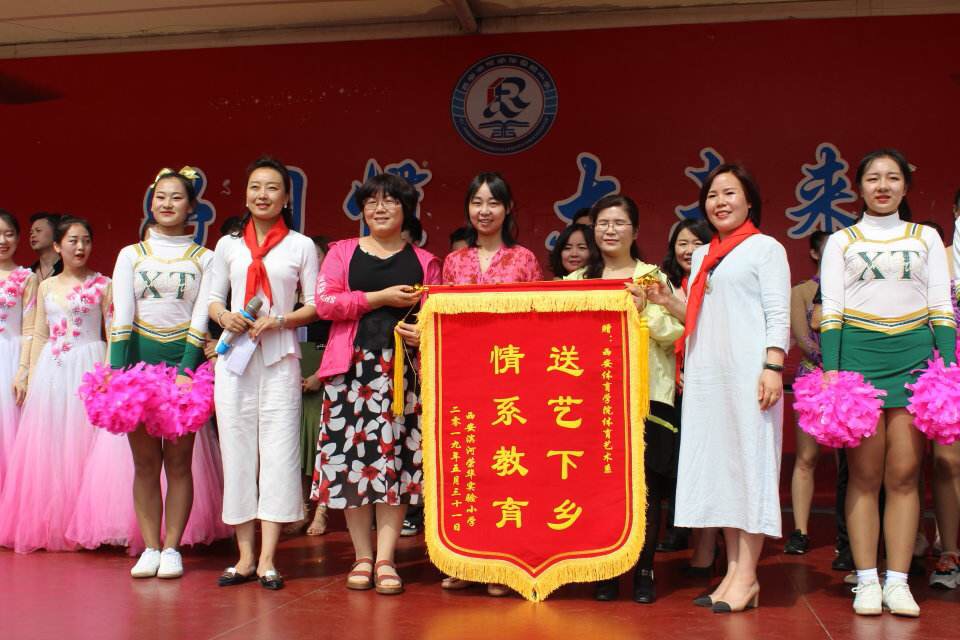 5月31日上午,体育艺术系一行六十余名师生来到鄠邑区滨河荣华实验小学,给全校的师生和家长们带来了一场精彩绝伦的表演。演出节目形式多样,包括了艺术体操,芭蕾舞、拉丁舞、啦啦操、瑜伽、独唱、民族舞、歌伴舞等8个节目,现场掌声和欢呼声不断。随后,鄠邑区滨河荣华实验小学杨校长为体育艺术系的师生赠送锦旗,以示感谢。