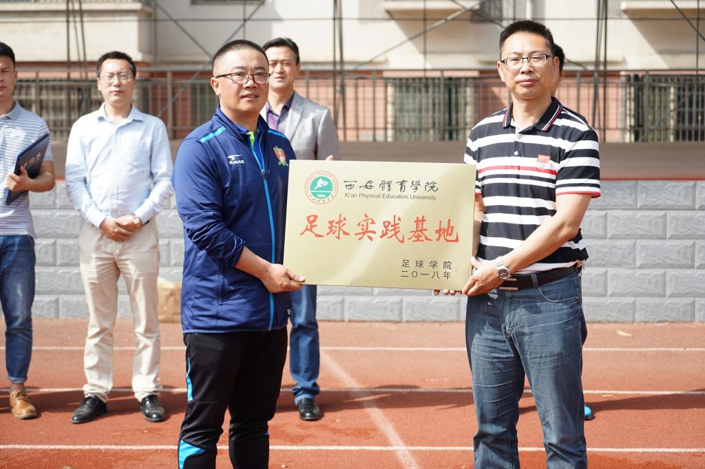 足球学院与铜川市阳光青少年足球俱乐部足球教学实践基地签约仪式在铜川市阳光青少年足球俱乐部训练场举行。足球学院朱军院长、教师、学生代表,铜川市体育局副调研员曹建江、铜川新区校园足球工作领导小组办公室主任陈文斌、铜川市阳光青少年足球俱乐部主席李永及俱乐部部分队员、教练出席了本次签约和授牌仪式。