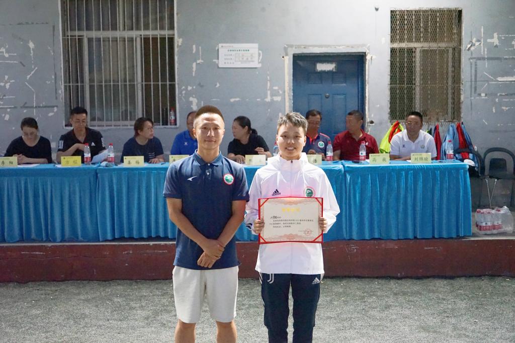 足球学院院长席海龙为团体一等奖2019级3班颁奖