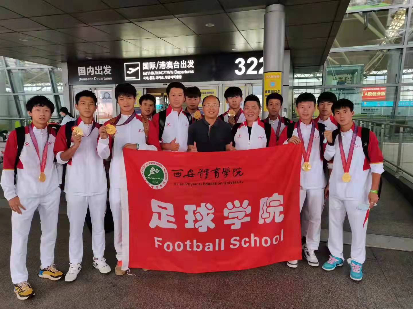 9月18日,第十四届全国运动会足球项目男子U20组决赛在陕西咸阳举行,我院学生刘承翰、王晓峰、陈永杰、谭洋、泮禹升、金忆杭、王宇辰、吴笑阳、尹杰、赵越政代表浙江队获得金牌。五至八名排位赛中,我院学生尚志军代表陕西队获得第七名。